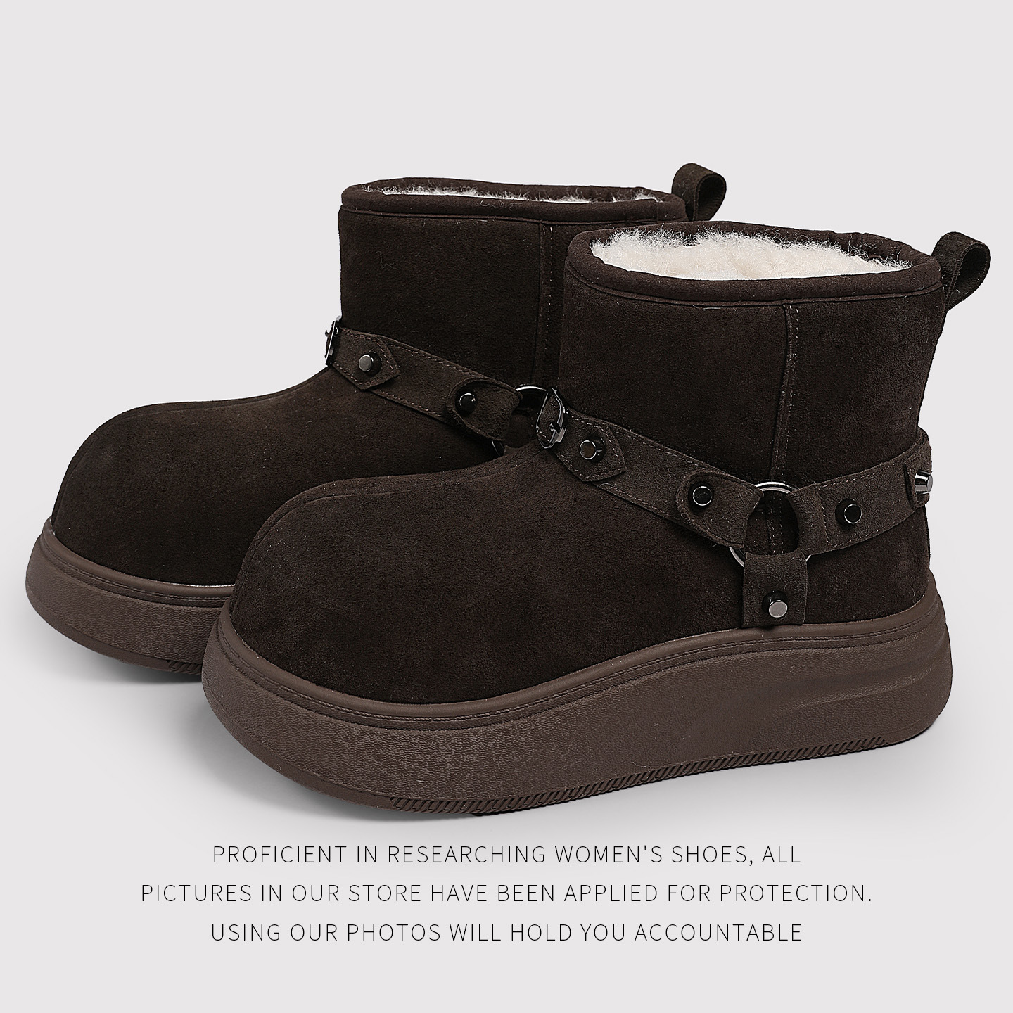2025冬季新款百搭舒适羊皮毛一体雪地靴女加厚羊毛厚底短靴大棉鞋