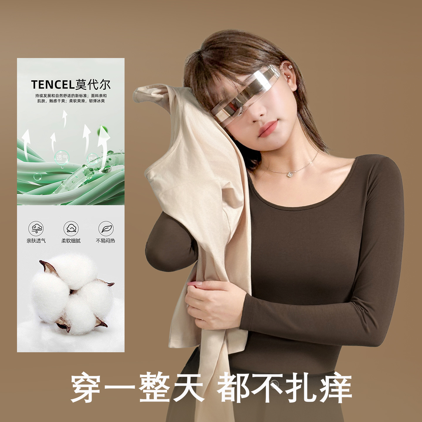 严选致曲莫代尔保暖内衣女士2025秋衣女薄款肌底上衣打底长袖t恤