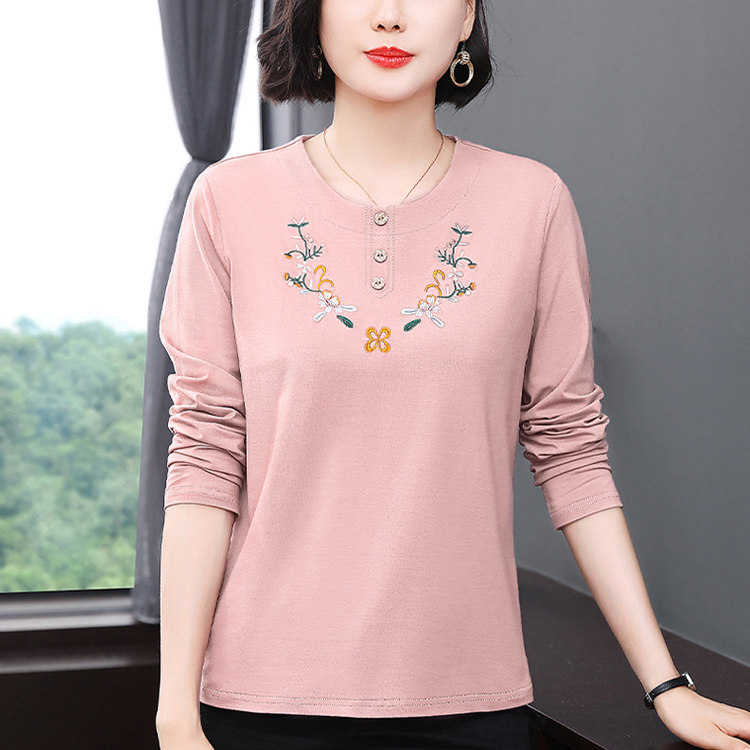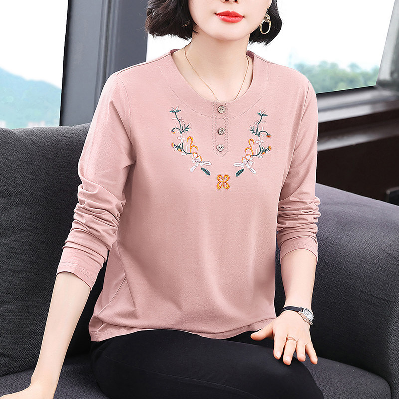 妈妈洋气上衣刺绣纯棉长袖t恤