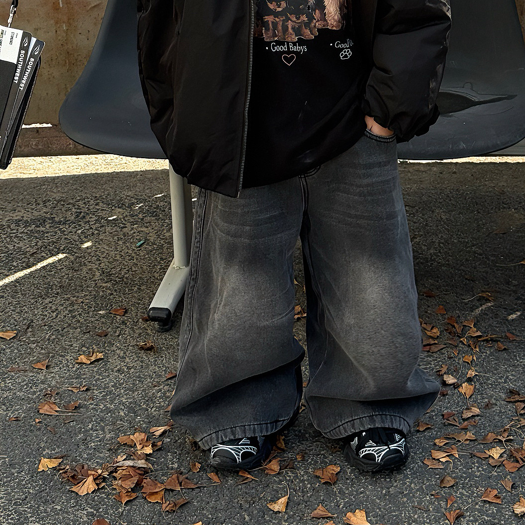 男童加绒牛仔裤秋冬2025新款儿童黑色加厚直筒裤美式男孩冬装裤子
