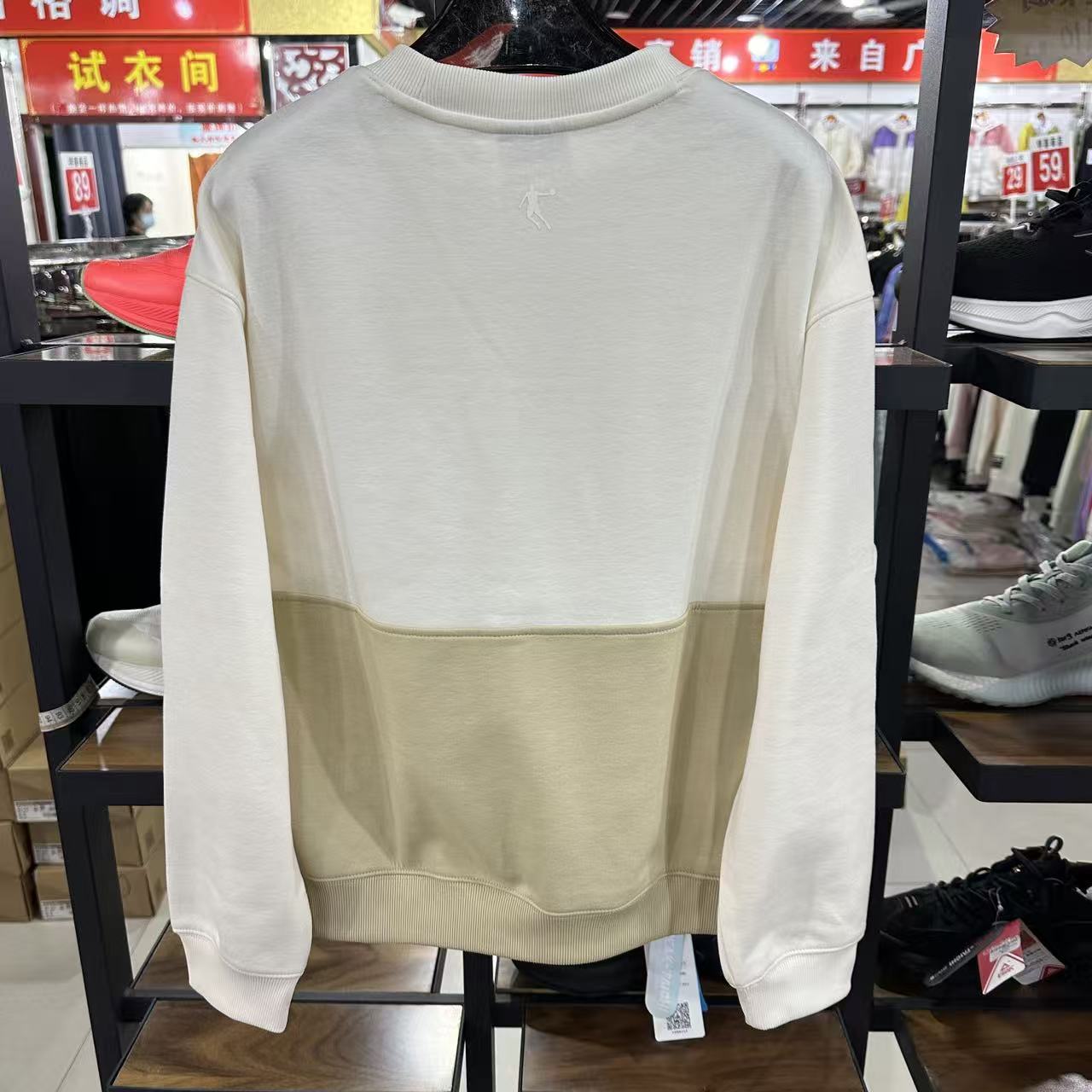 乔丹春秋款女针织卫衣圆领套头拼色薄拉绒休闲上衣FED12231426