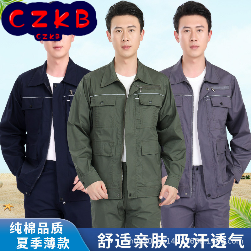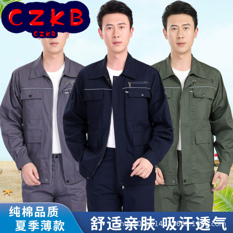 男工装制服夏季2024新款套装汽修耐磨纯棉电焊长袖衬衫劳保工作服