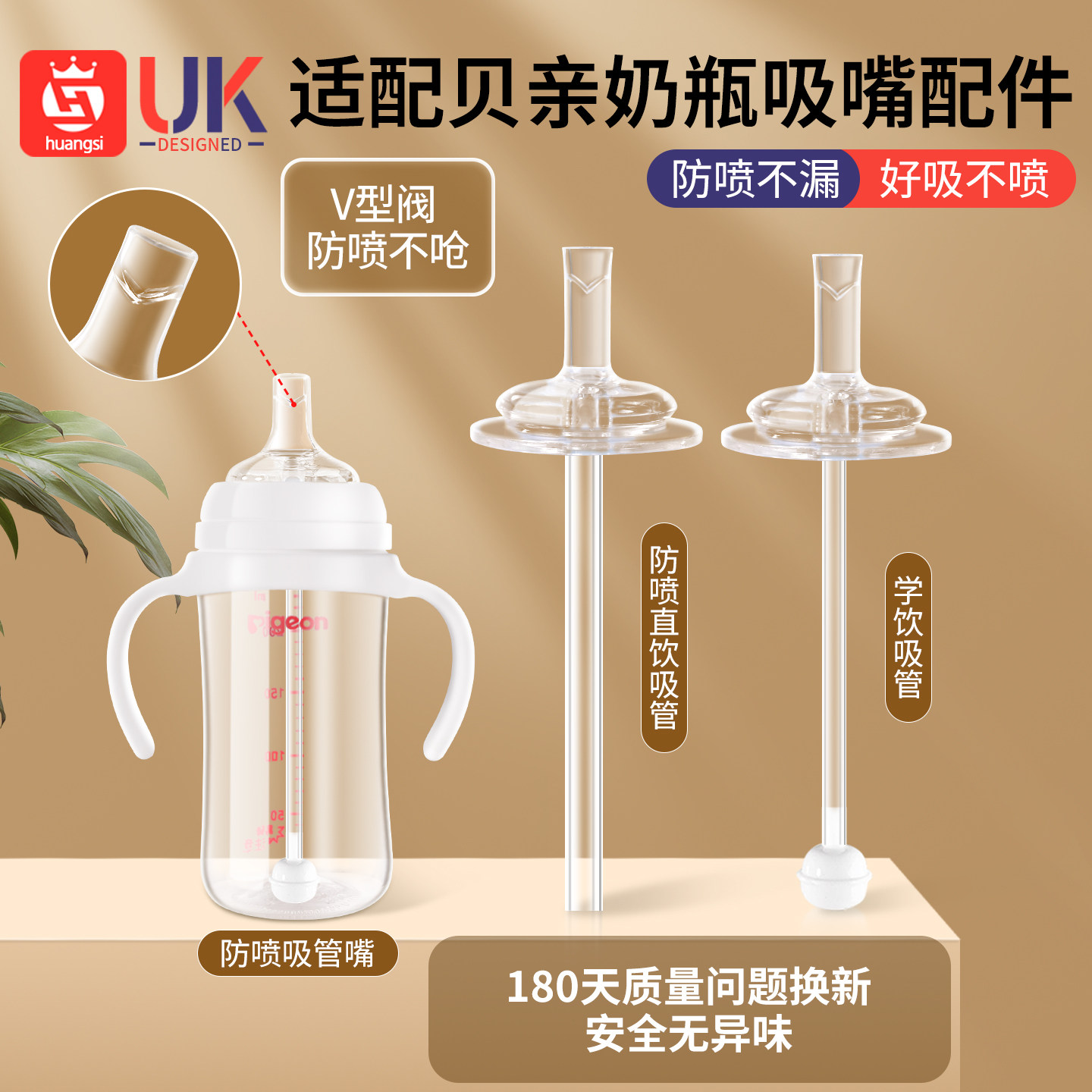 适配贝亲学饮奶嘴奶瓶配件直饮吸管鸭嘴宽口径第三代把手柄重力球
