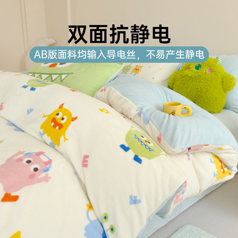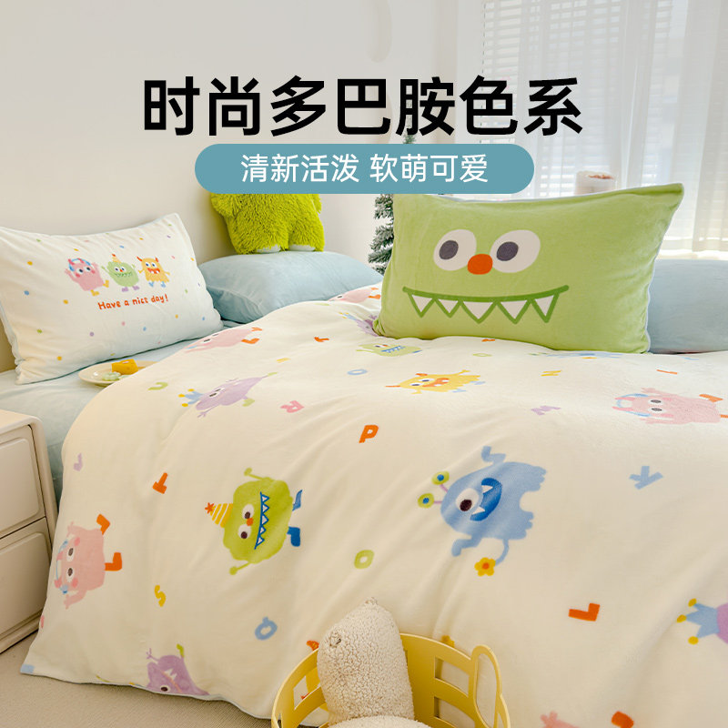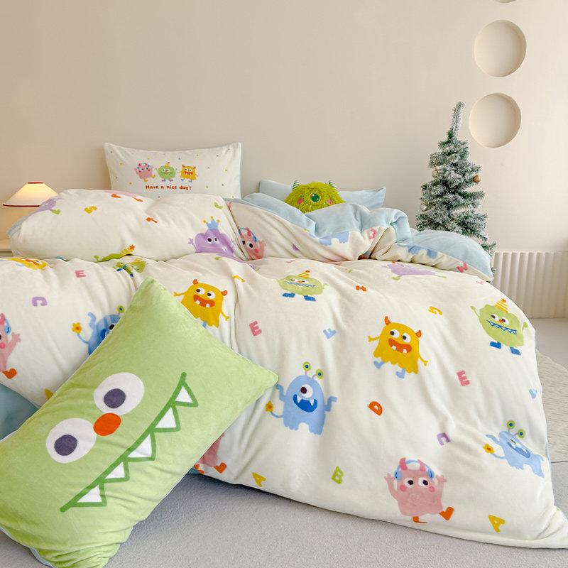 多喜爱珊瑚绒四件套冬季双面加厚保暖床单被套多巴胺小怪兽三件套