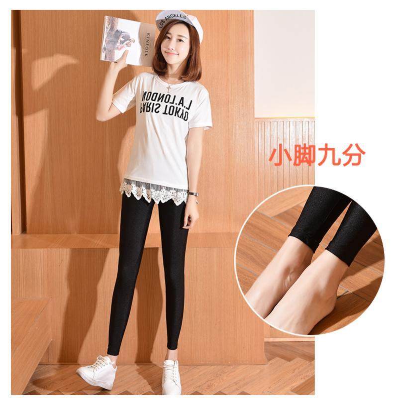 秋季冰丝九分裤外穿薄款踩脚脚蹬高弹力光面光泽裤打底裤女高腰裤
