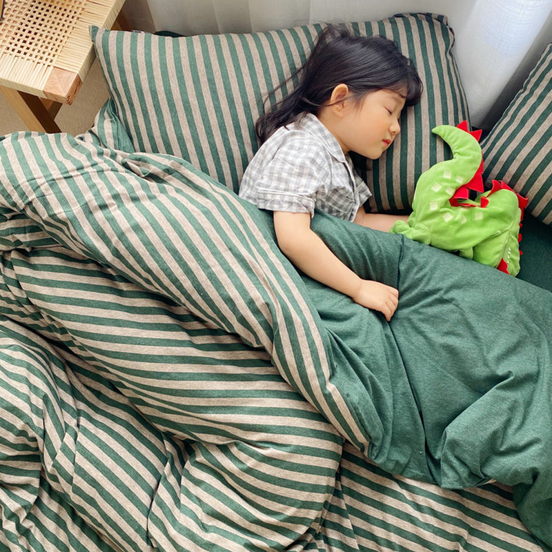 日式条纹天竺棉纯棉被套单件儿童宝宝针织棉全棉被罩可搭配四件套