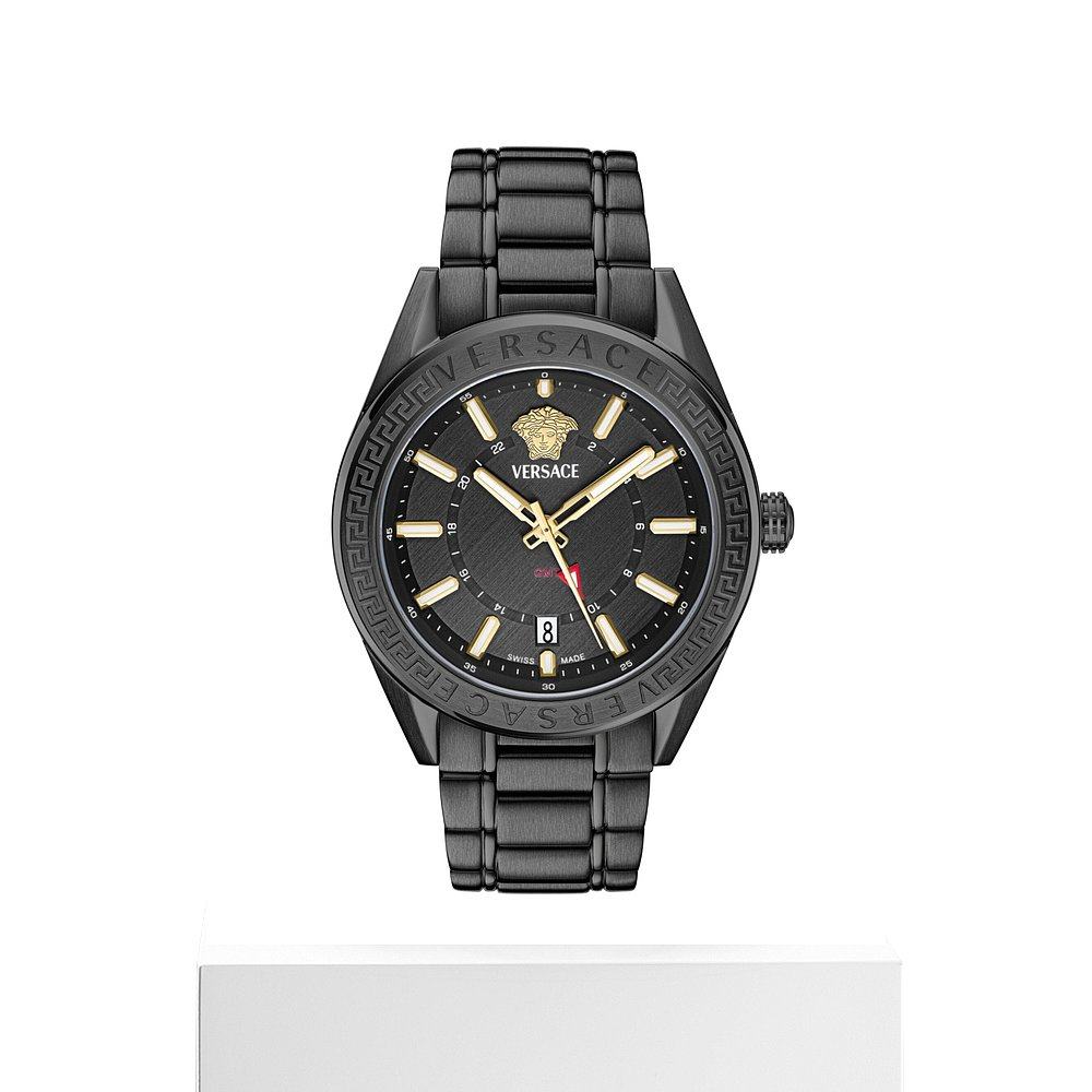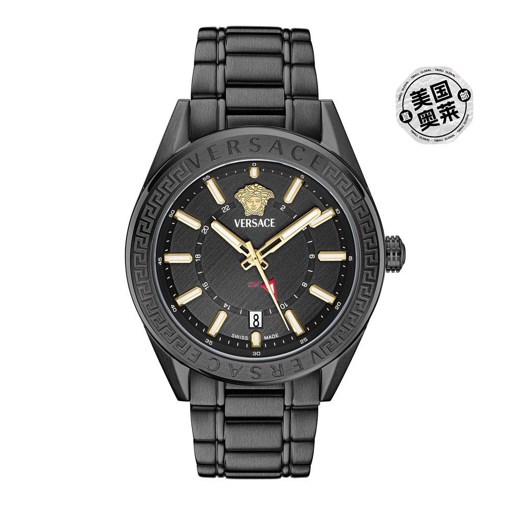 自营versaceV-Code GMT Bracelet Watch - black/black/black 美