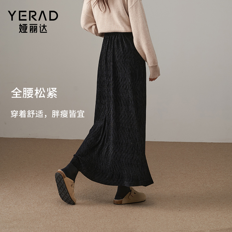 娅丽达时尚高腰黑色丝绒半身裙女2025秋冬新款优雅包臀裙鱼尾裙子