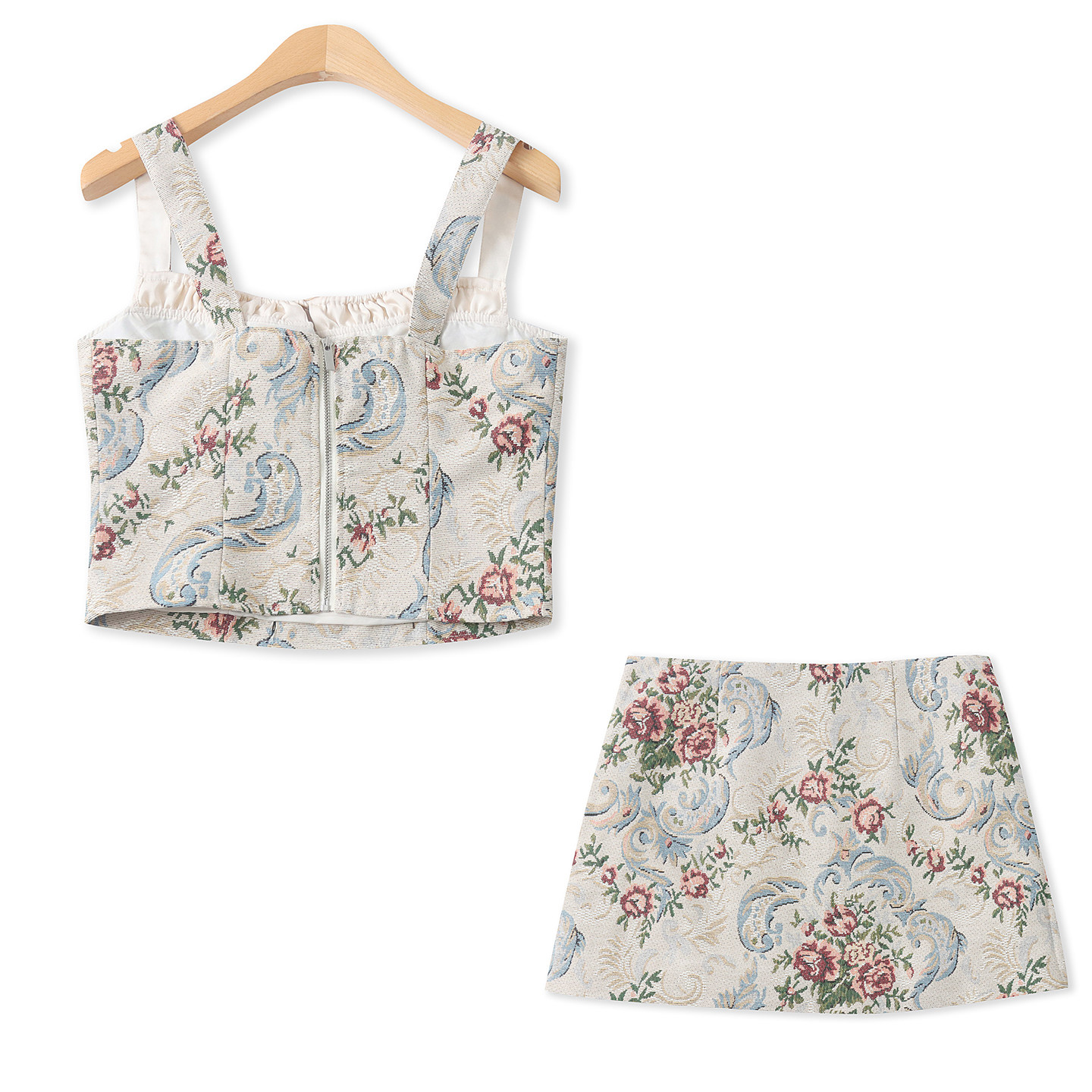 辣妹风套装夏季新款外贸女装百搭时尚提花吊带背心+半身短裙19508