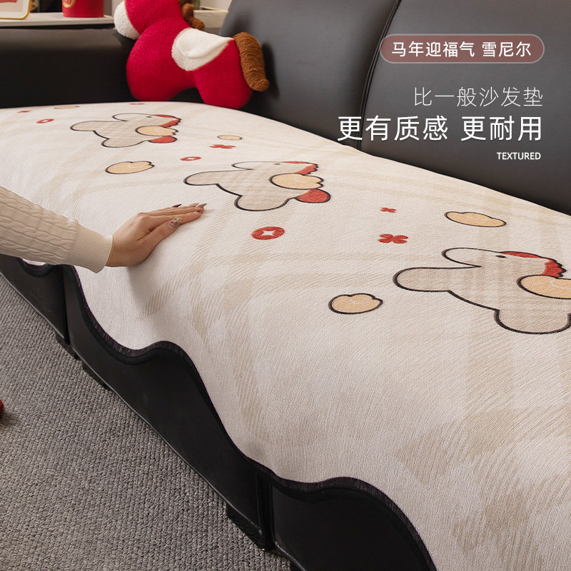新年喜庆沙发垫2026新款马年红色盖布巾四季通用氛围感防滑坐垫子