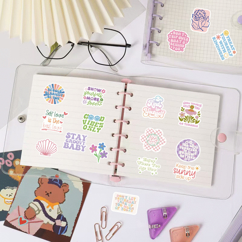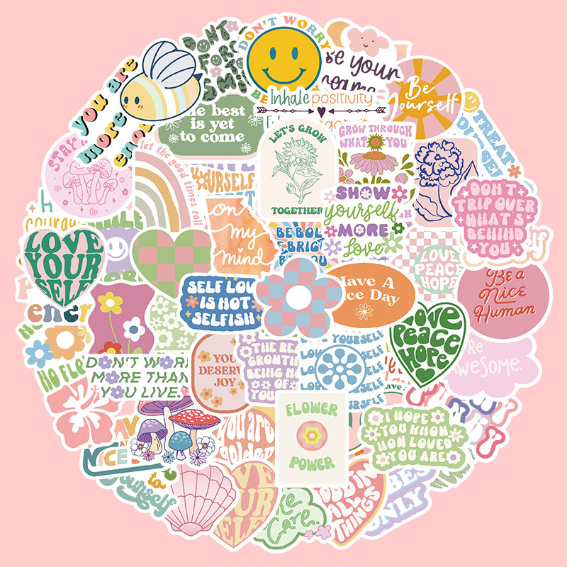 100张粉色系励志语句加油鼓励上岸个性英文贴纸装饰笔记本头盔镜面手账保温杯冰箱电动车汽车文具DIY防水贴纸