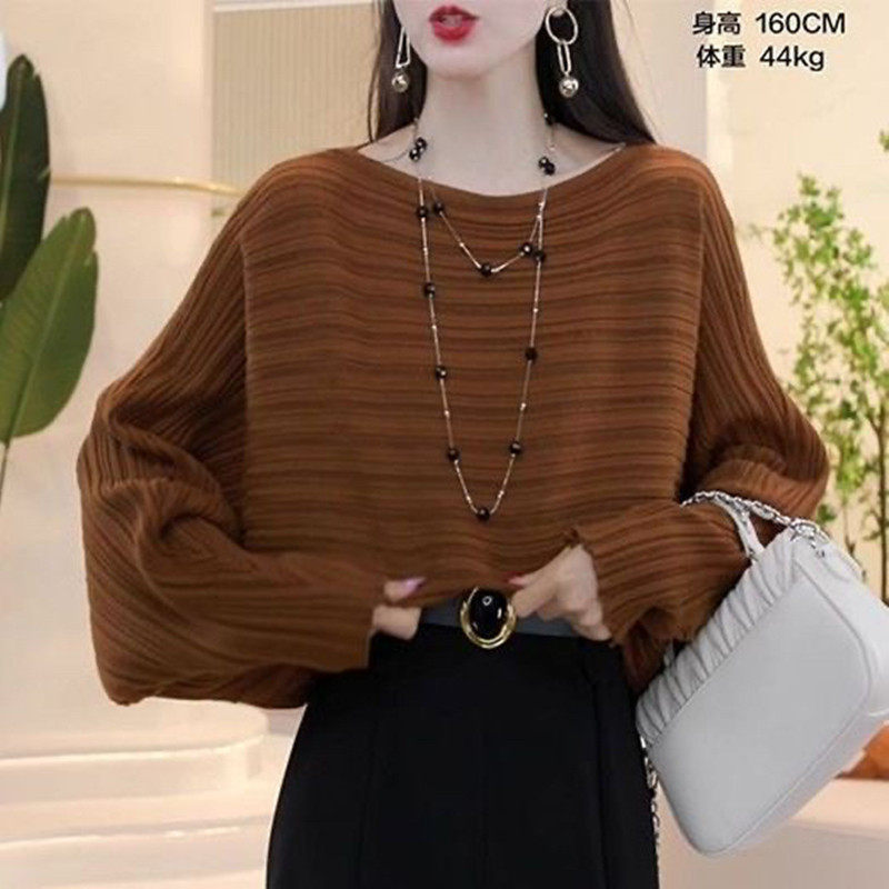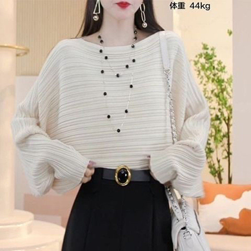 时尚设计感蝙蝠衫毛衣女秋季新款宽松显瘦洋气慵懒套头针织衫上衣