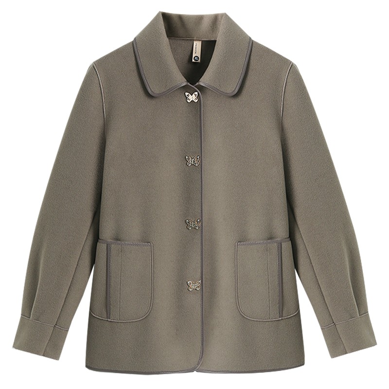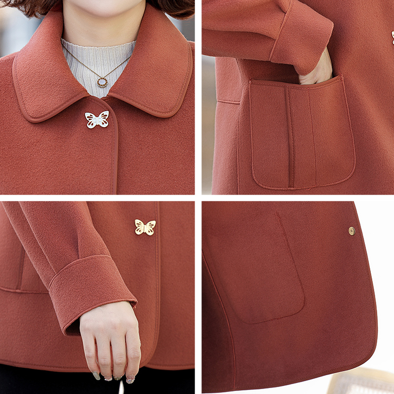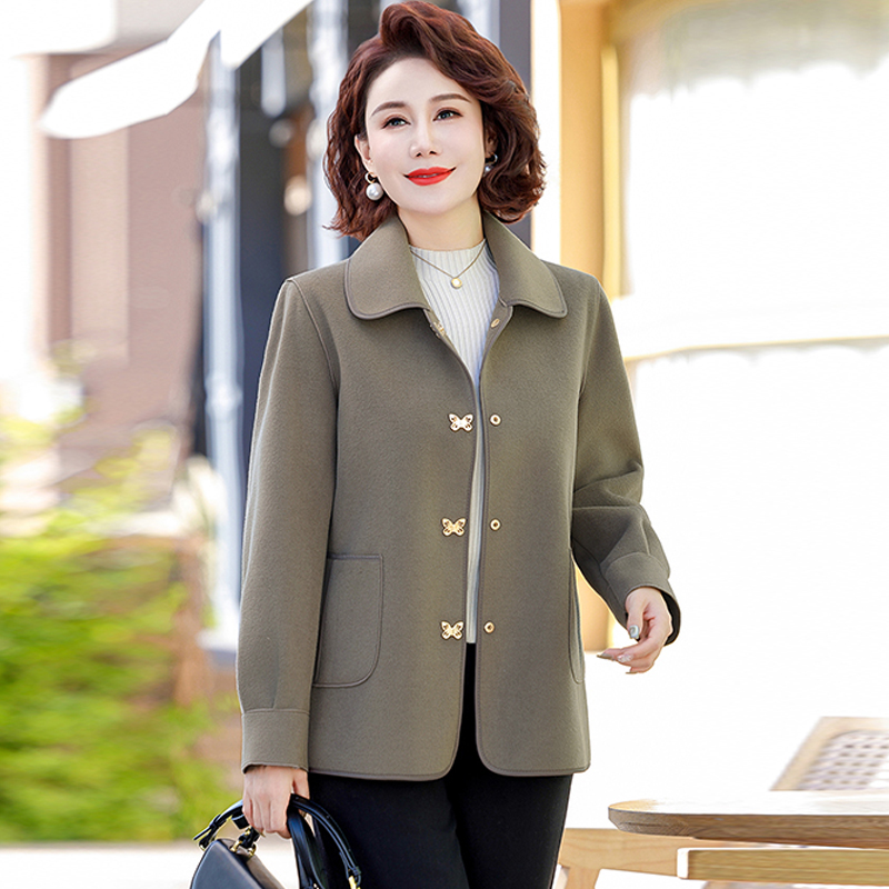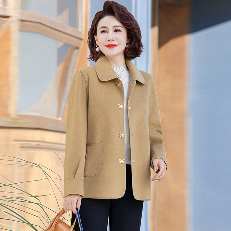 中年妈妈秋装双面呢翻领外套短款中老年女装春秋洋气毛呢小西装