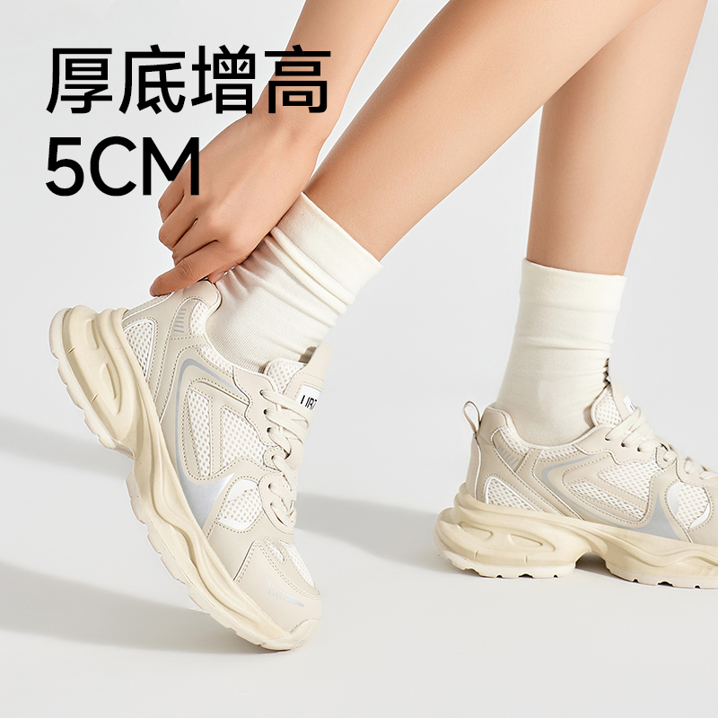 UBZ 厚底网面老爹鞋女款2025新款春秋增高透气时尚白色休闲运动鞋