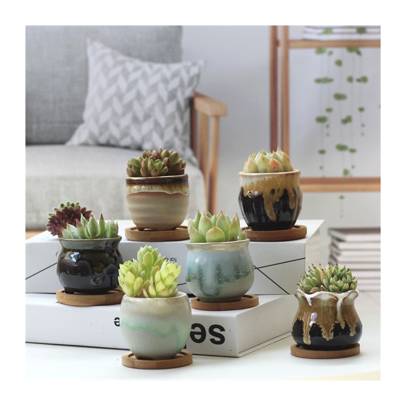 极速小号多肉g植物流釉花盆简约组合粗陶陶瓷盆栽家用桌面拇指盆
