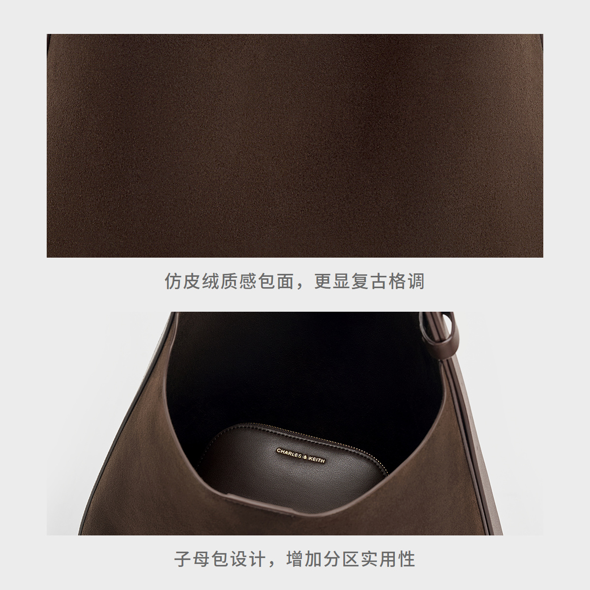 CHARLES&KEITH25秋新品CK2-40270966-2大容量绒面单肩子母托特包