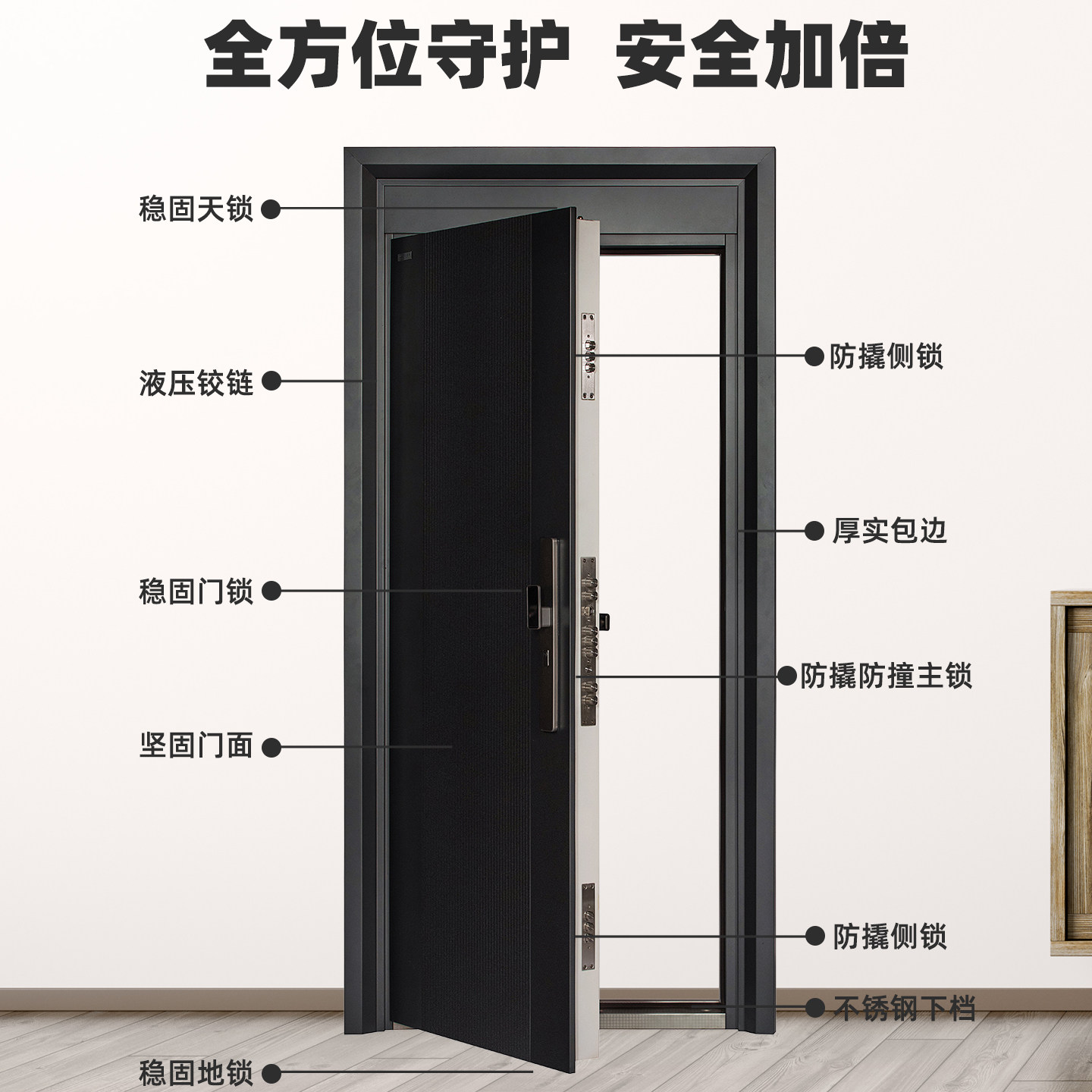 甲级防盗门安全门家用门双色门加高门楣进户门入户门指纹锁暗铰链