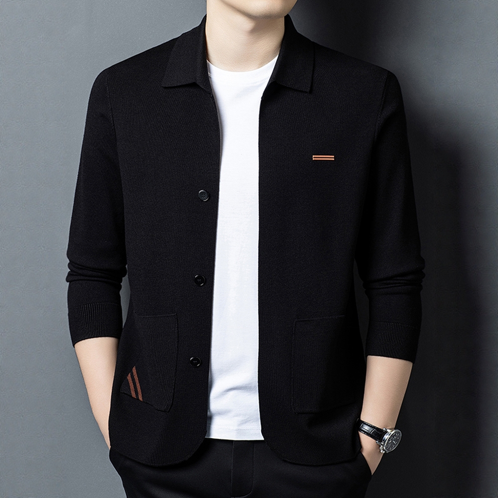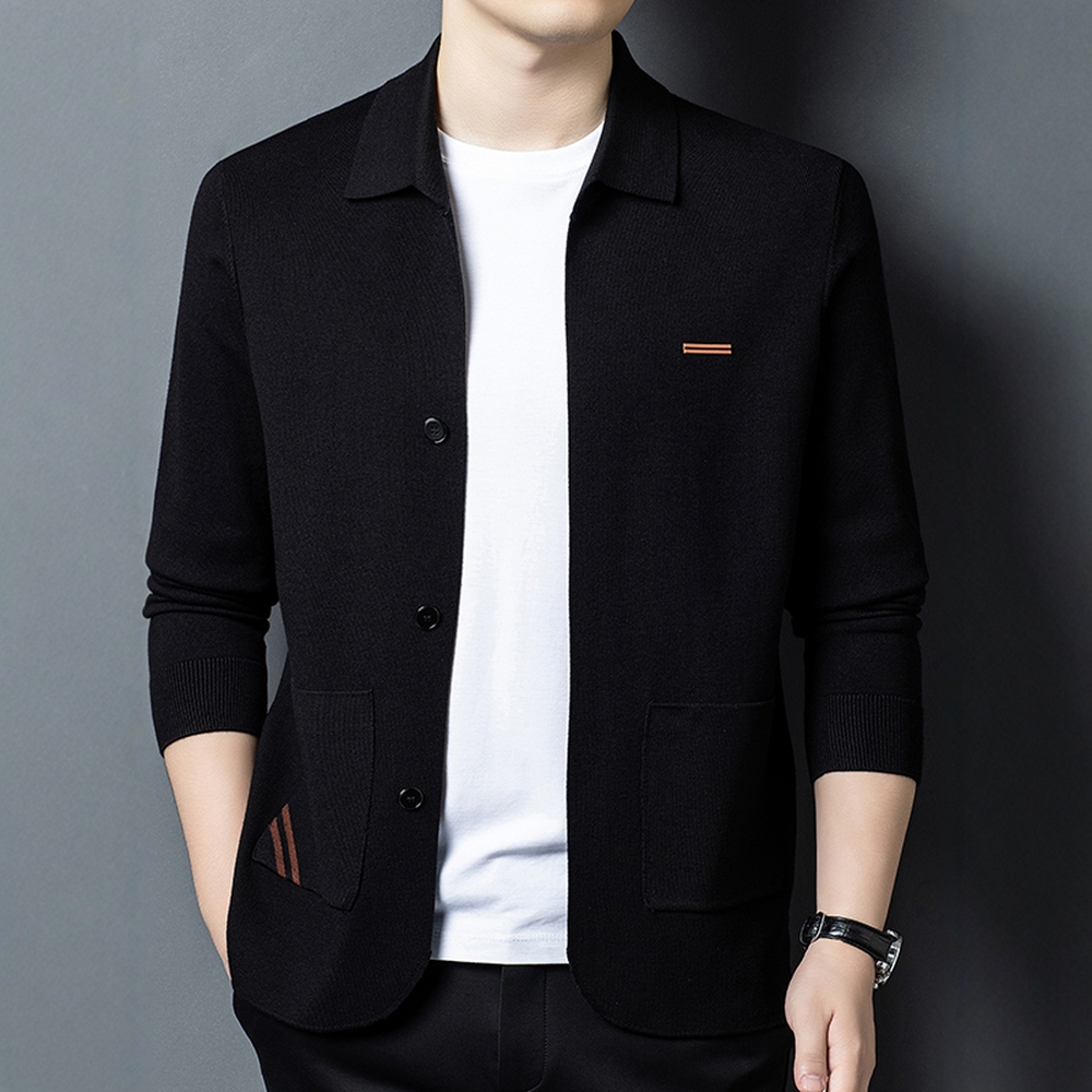 高端翻领针织衫开衫男秋冬季2025新款复古休闲毛衣外套男士毛线衣
