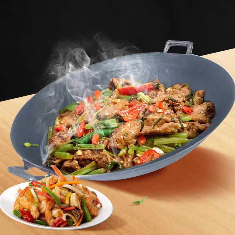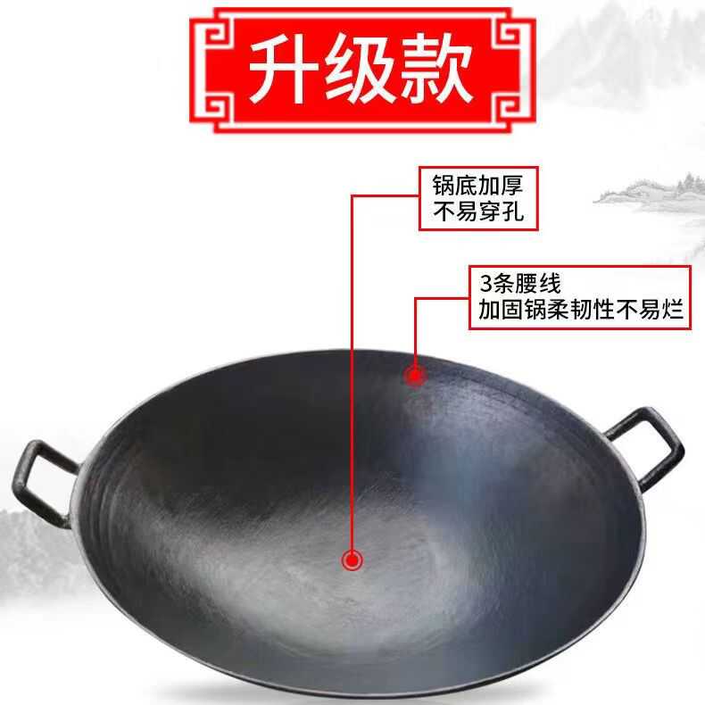 传统老式双耳炒锅无涂层加厚圆底尖底地锅铸铁生铁锅家用大小干锅