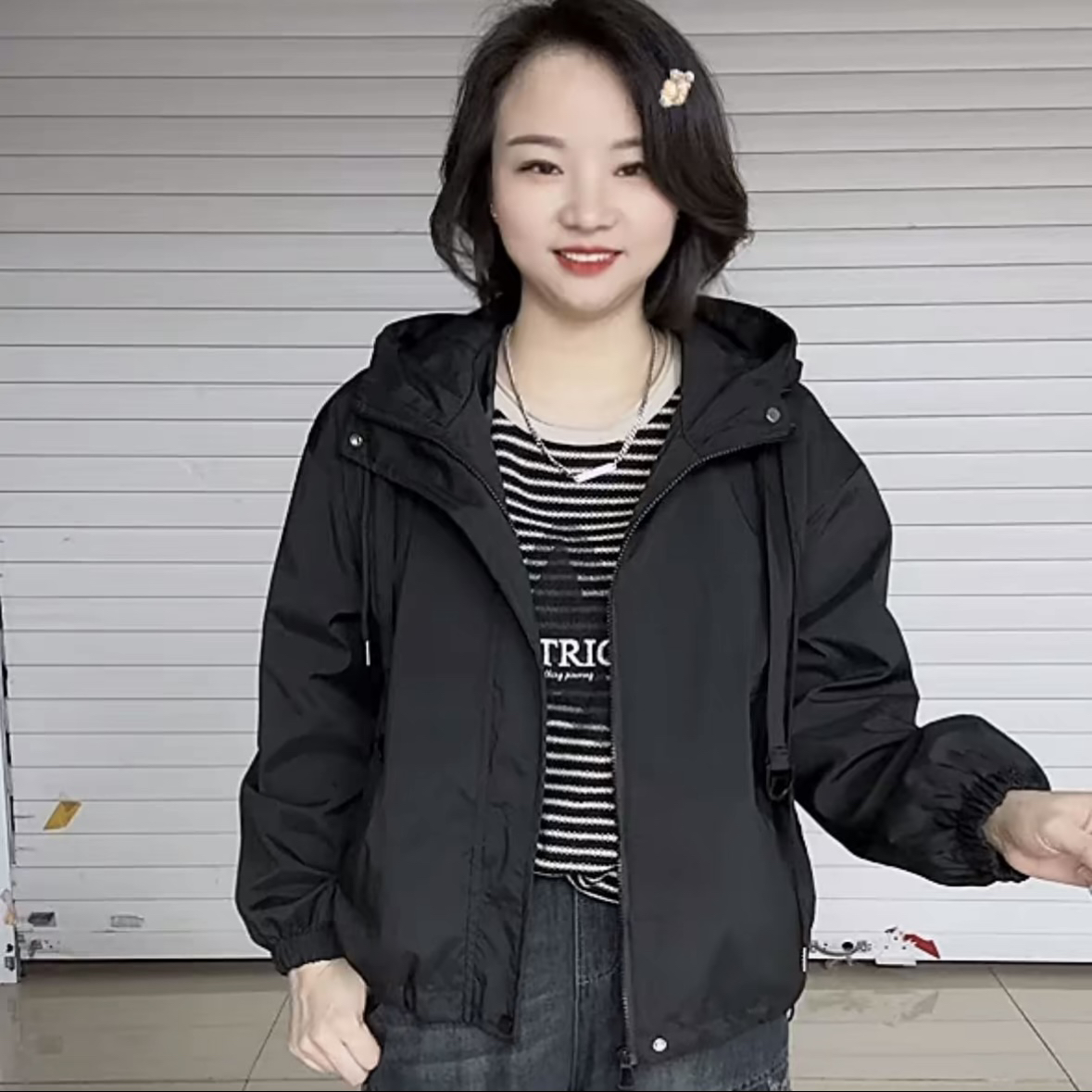 小个子时尚连帽短外套女2025春秋新款韩版宽松显瘦工装拉链冲锋衣