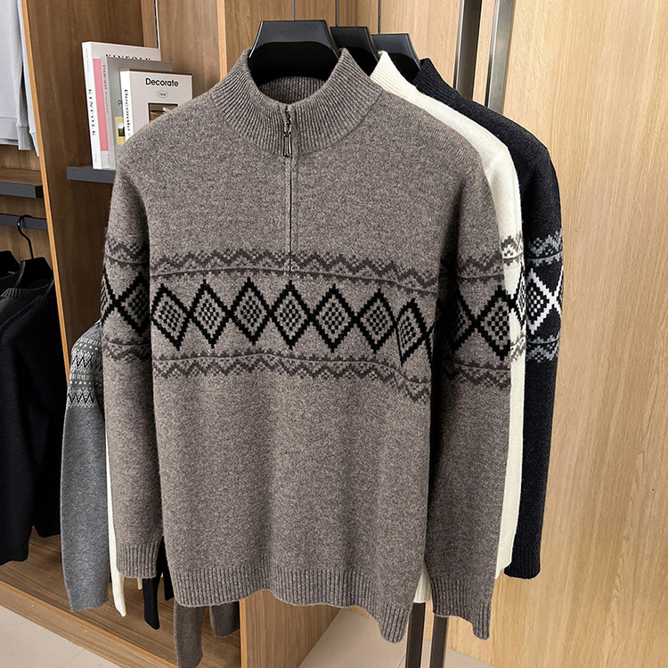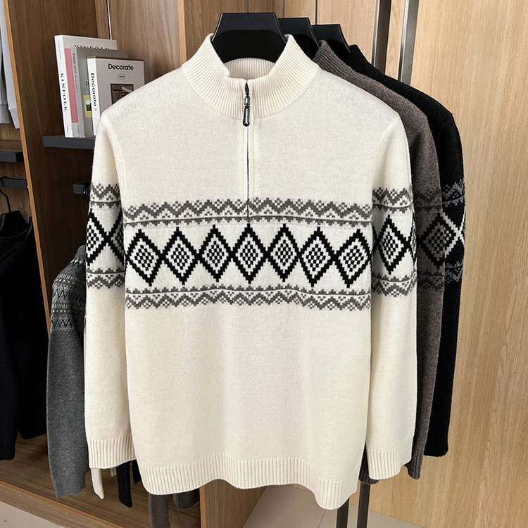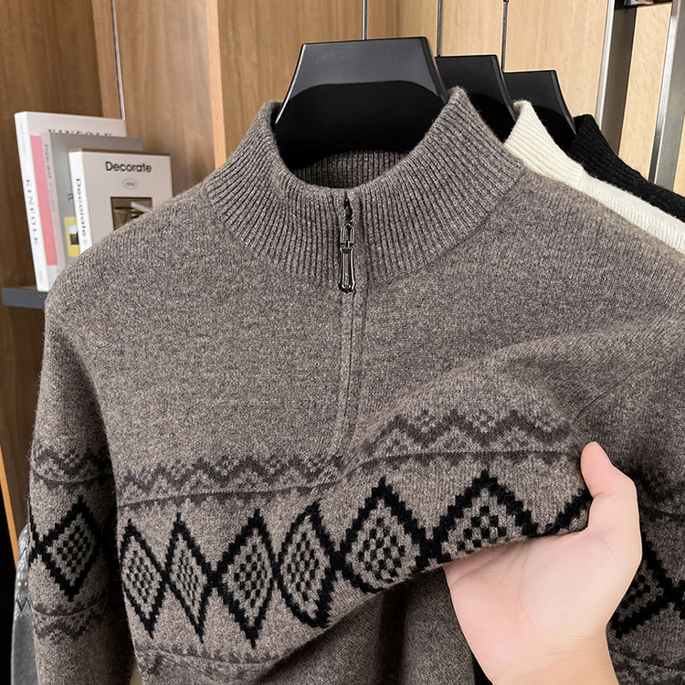 高端半拉链立领毛衣男冬季纯羊毛针织打底衫加厚保暖针织衫羊毛衫