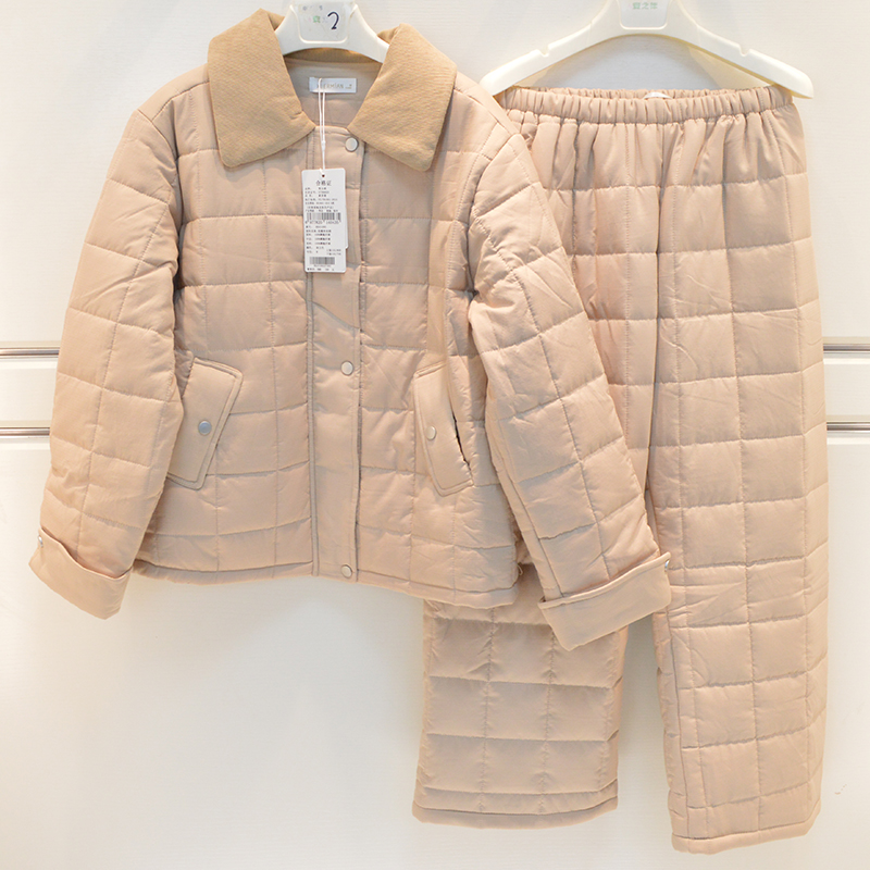 雪尔绵睡衣2025冬季女士浣溪纱素色简约高级感三层加厚夹棉家居服
