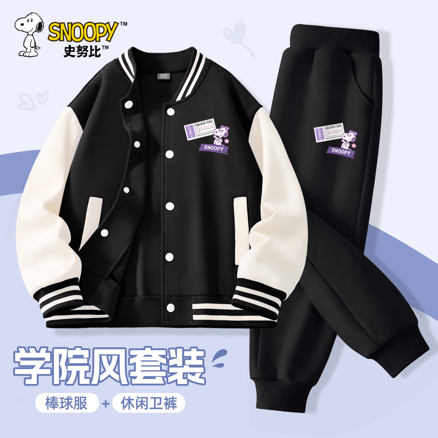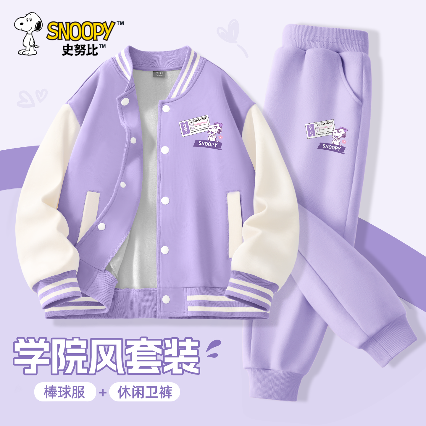 史努比女童套装2025新款儿童休闲运动棒球服俩件装女孩秋装时髦潮