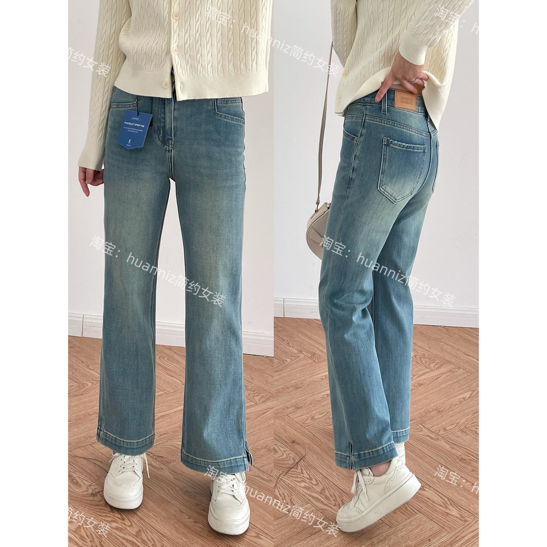 超赞显瘦腿精~四面弹牛仔开叉微喇裤女25春装高腰弹力九分直筒裤