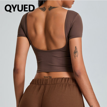 夏季新款美背瑜伽服短袖女半固定胸垫紧身速干健身t恤跑步运动衣