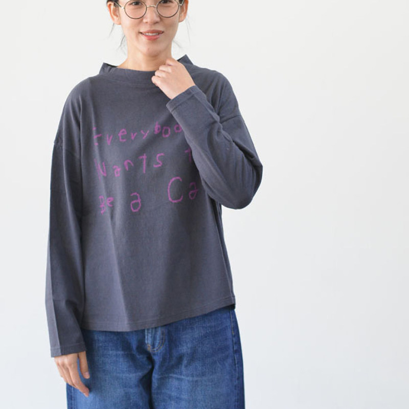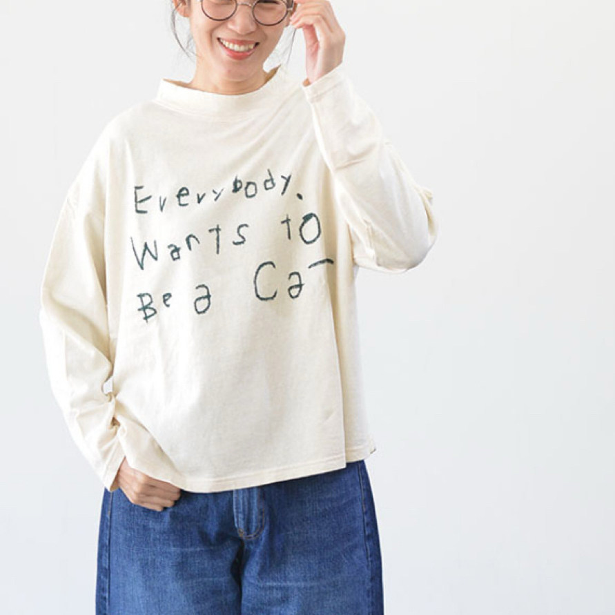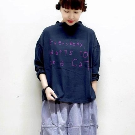 日系25秋冬新品字母印花竹节棉长袖T恤百搭舒适上衣女