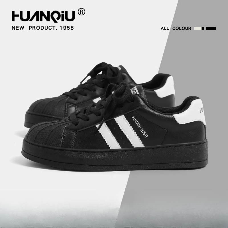 环球黑色小众贝壳头滑板鞋女2025新款春季休闲运动女鞋ins潮鞋子