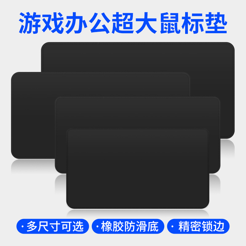 办公电竞游戏鼠标垫简约锁边加大加厚台式笔记本家用桌垫黑色男女
