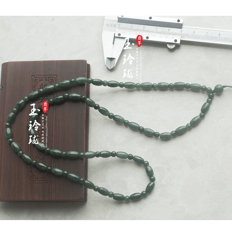 天然油青翡翠A货项链玉石吊坠男女挂绳路路通米珠全珠手机玉坠绳