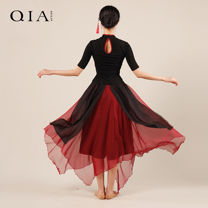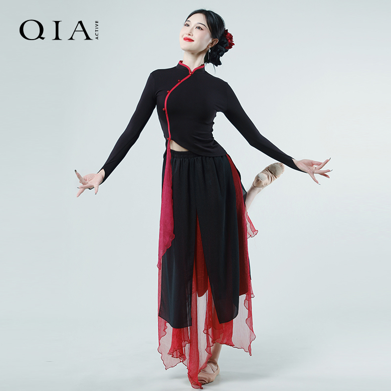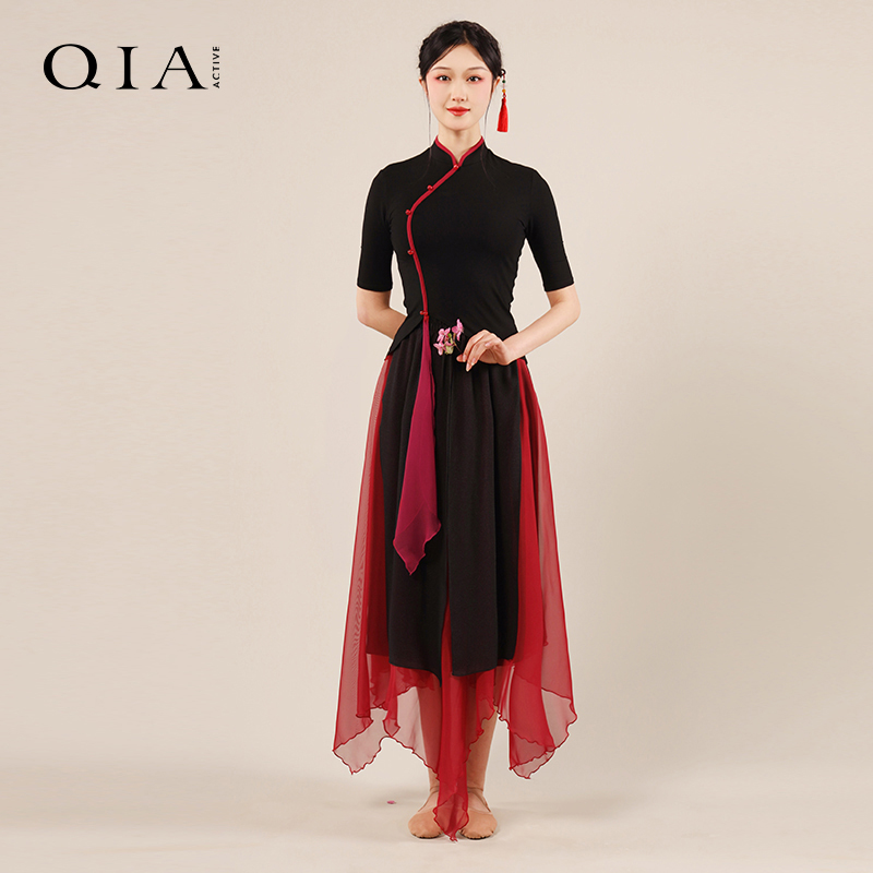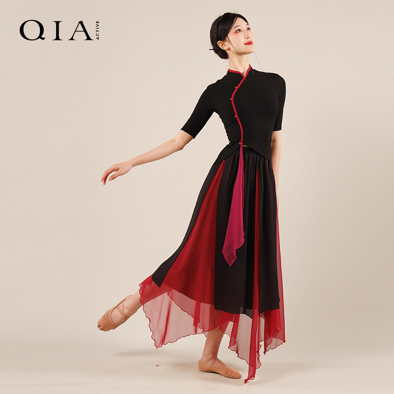 琪亚古典舞蹈服女中国舞半袖旗袍领上衣成人形体练功服身韵演出服