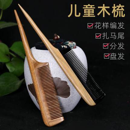儿童梳子尖尾梳绿檀木梳女孩挑发分发线盘发超密齿尖头梳脱发静电