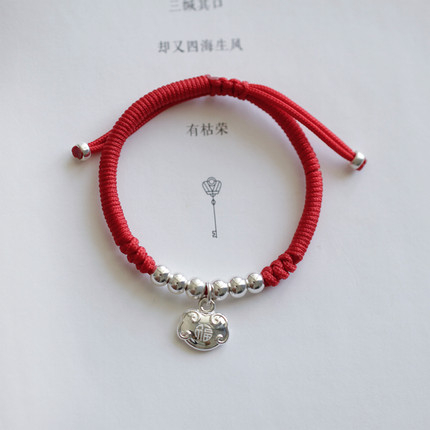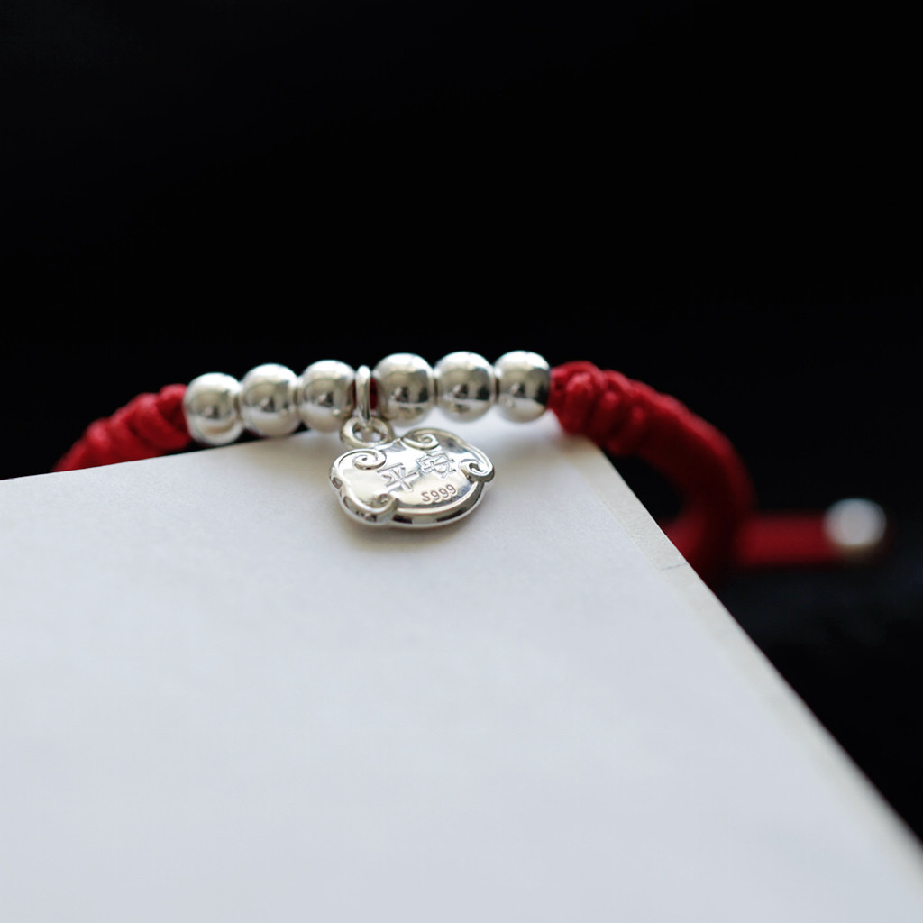 如意福锁 平安吉祥999足银长命锁手链红绳编织平安锁纯银手绳礼物