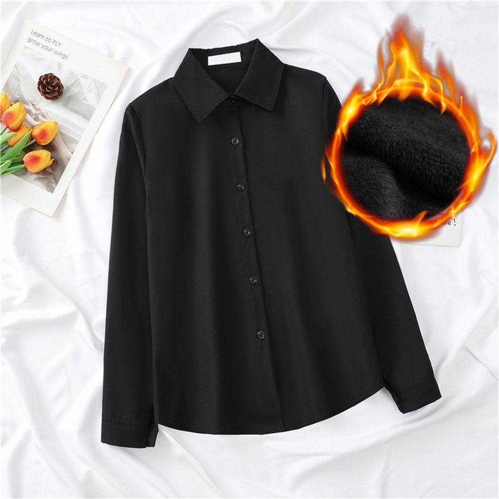 2024秋冬加绒加厚蓝色衬衫女长袖修身显瘦职业装大码工作服白衬衣