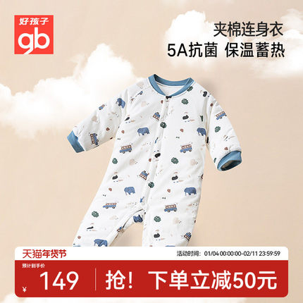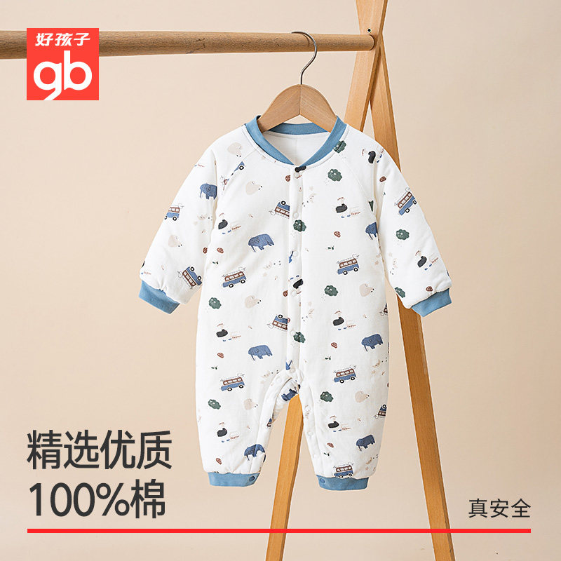 Goodbaby好孩子新生婴儿连体衣夹棉秋冬季宝宝哈衣爬服家居服可爱