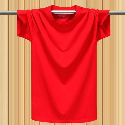 短袖t恤男圆领打底汗衫纯色运动半袖体恤上衣女 大红色