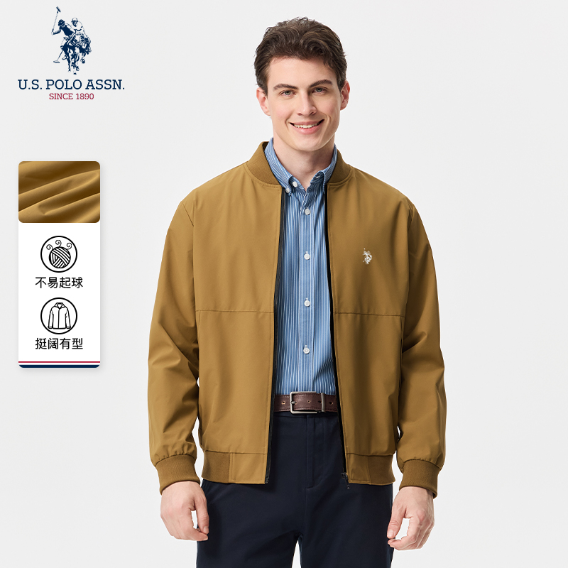 USPA男士夹克商务休闲棒球领美式保罗上衣新款纯色通勤时尚外套