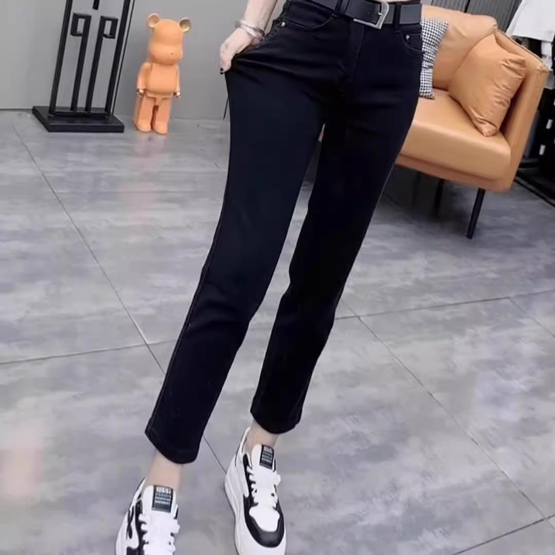 黑色直筒牛仔裤女2025新款春秋夏季薄款高腰烟管小个子九分不掉色