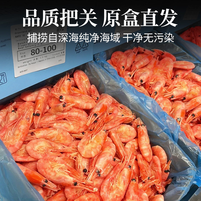 新鲜北极甜虾即食头籽冰虾刺身大号带籽腹籽原箱北极熊元宝虾10斤