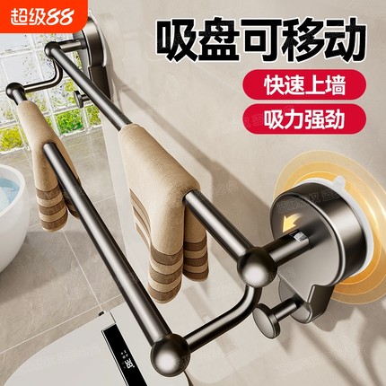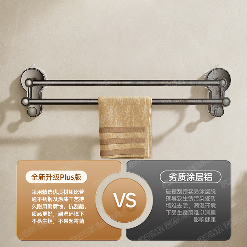 免打孔壁挂式枪灰吸盘式毛巾置物架卫生间挂杆厕所洗手间收纳挂架