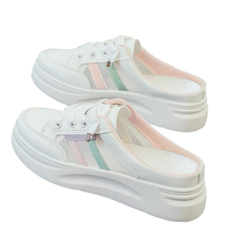 2025新款夏季半托小白鞋厚底外穿懒人女鞋潮鞋凉拖包头休闲单
