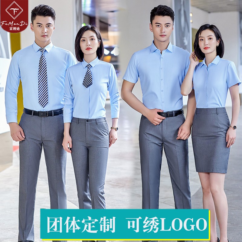 定制衬衫绣logo长袖工装免烫商务男女职业短袖工作服大码正装衬衣