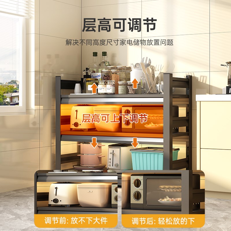 速发厨房置物架落地多层多功能家炉微波用烤箱架架收纳锅货架橱柜