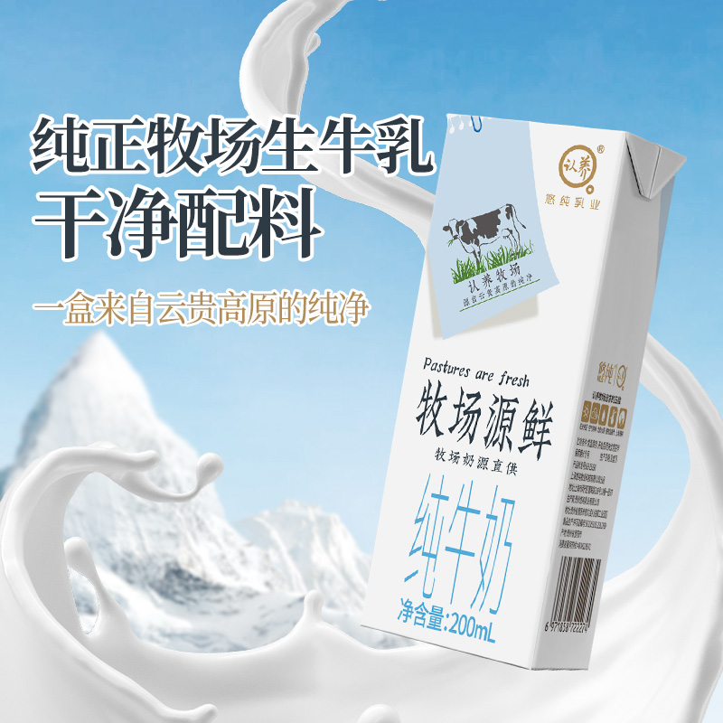 【直播】悠纯牧场源鲜纯牛奶200ml*10盒*1箱全脂纯牛奶送礼