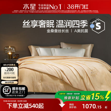 水星家纺金蚕丝被抗菌春秋被芯四季通用被子二合一子母被轻奢床品