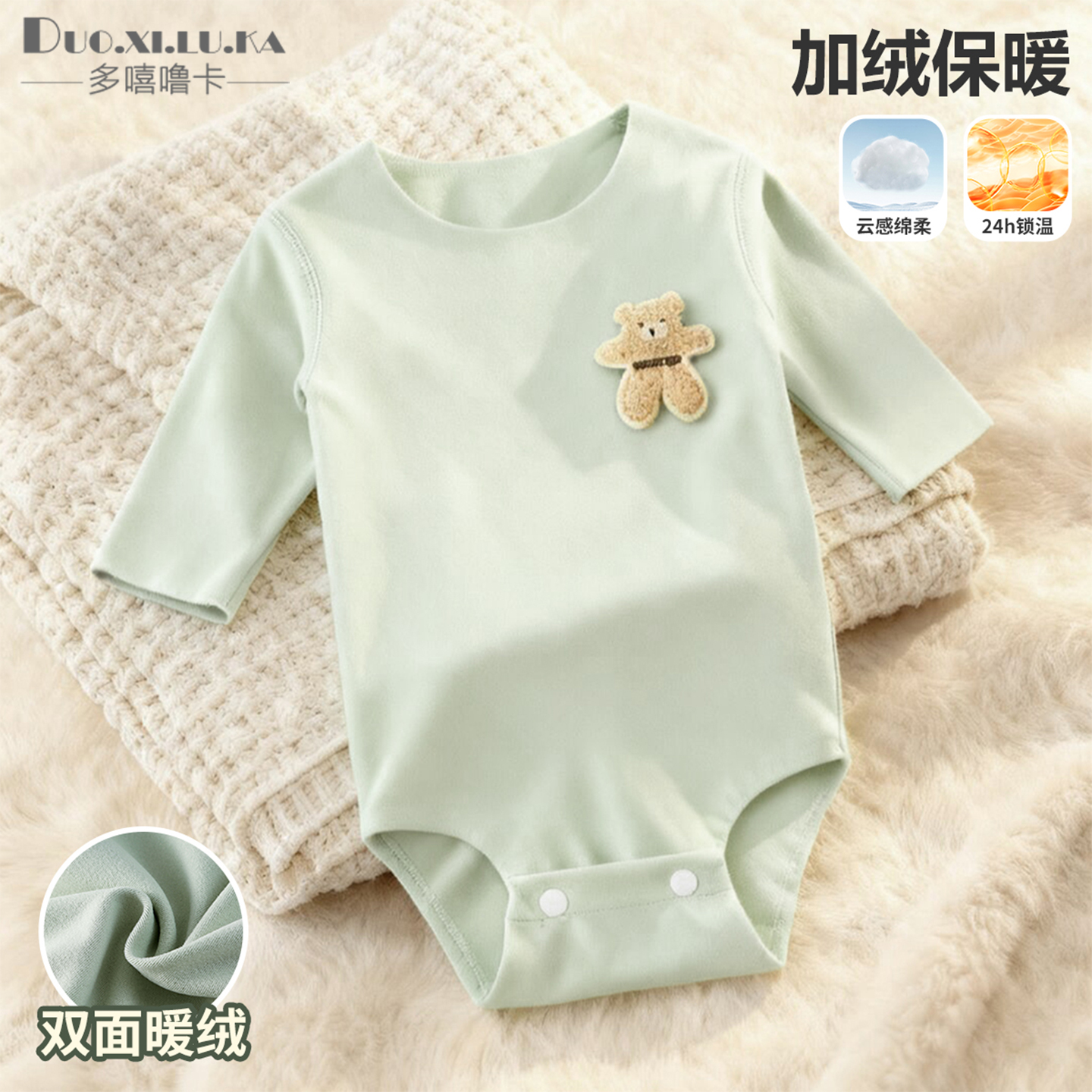 婴儿双面绒长袖包屁衣