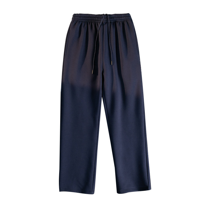 中学生羊羔绒校服裤男女冬加绒加厚保暖运动裤藏青纯色休闲直筒裤